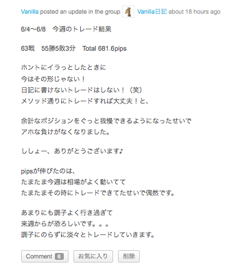 6月4日〜8日週バニラさんスキャルピング成績 Posted on 2012年6月12日 by rannam 5月入会のバニラさん先週の集計 ユーロ円スキャルピング 55勝5敗 681.8ピプス イラっとしたときにモノを投げるモニターに正拳突きを喰らわすタイプなので要注意。(笑)
