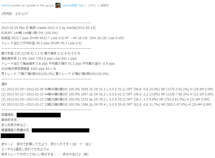 実際のSNS内の月計キャプチャ(最高成績2013年2月度)